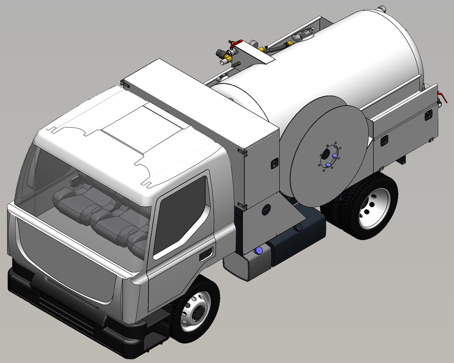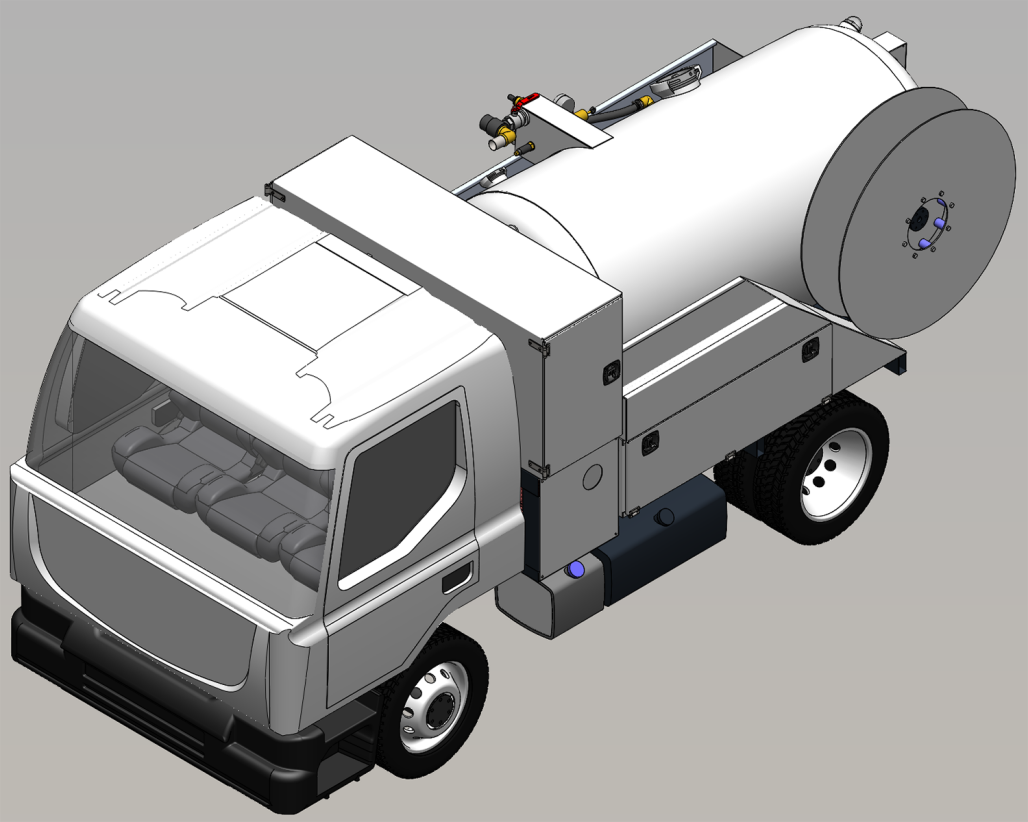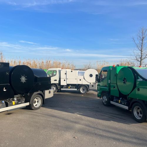 | Enrouleurs | Possibilité enrouleur tuyau d'aspiration permettant le stockage de 25m DN65 ou 40m DN50 Enrouleurs HP à entrainement hydraulique capacité 80m flexible 1/2 | |